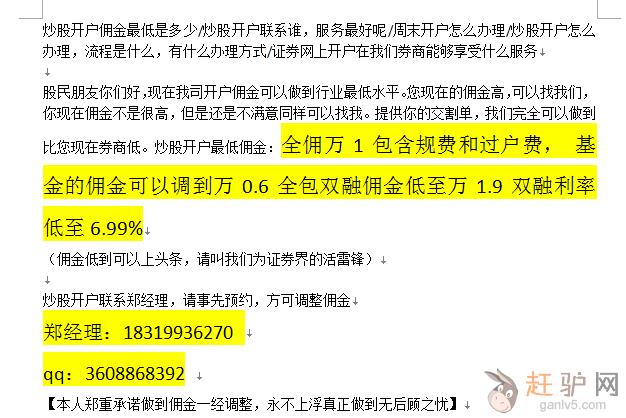 股票开户佣金万1,全国开户,行业服务最好原文www.ganlv5.com
