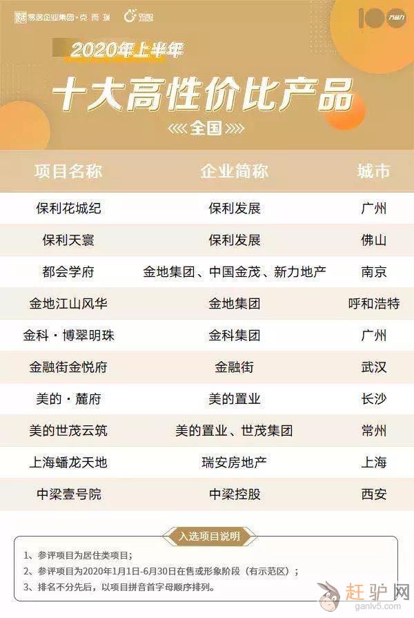 2020年在跌宕起伏中过半,楼市的深V波动也让几家欢喜几家忧来源www.ganlv5.com。7月以来,各大开发商纷纷晒出年中报,这时期也是各种行业评选高峰期。近日由著名地产研究机构克而瑞研究中心发起的《2020年上半年中国房企产品测评》结果出炉,通过综合专家评审分数、网络投票、宣传与口碑、项目初评分等综合考评等,选出了2020上半年“全国十大高端产品”、“十大高性价比产品”两个重量级大奖,作为行业专业研究机构,这2个榜单的含金量十足,也是各大开发商必争之地。